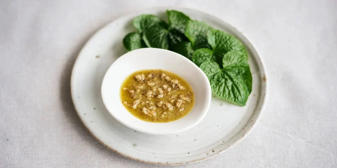 This is a riff on a classic anchovy and walnut dressing. Traditionally this uses mustard, we are using Shima wasabi to add a fresh kick of heat that quickly fades and allows other flavours to shine. Great as a salad dressing but also as a dip for bread, over grilled vegetables or as a sauce for fish.